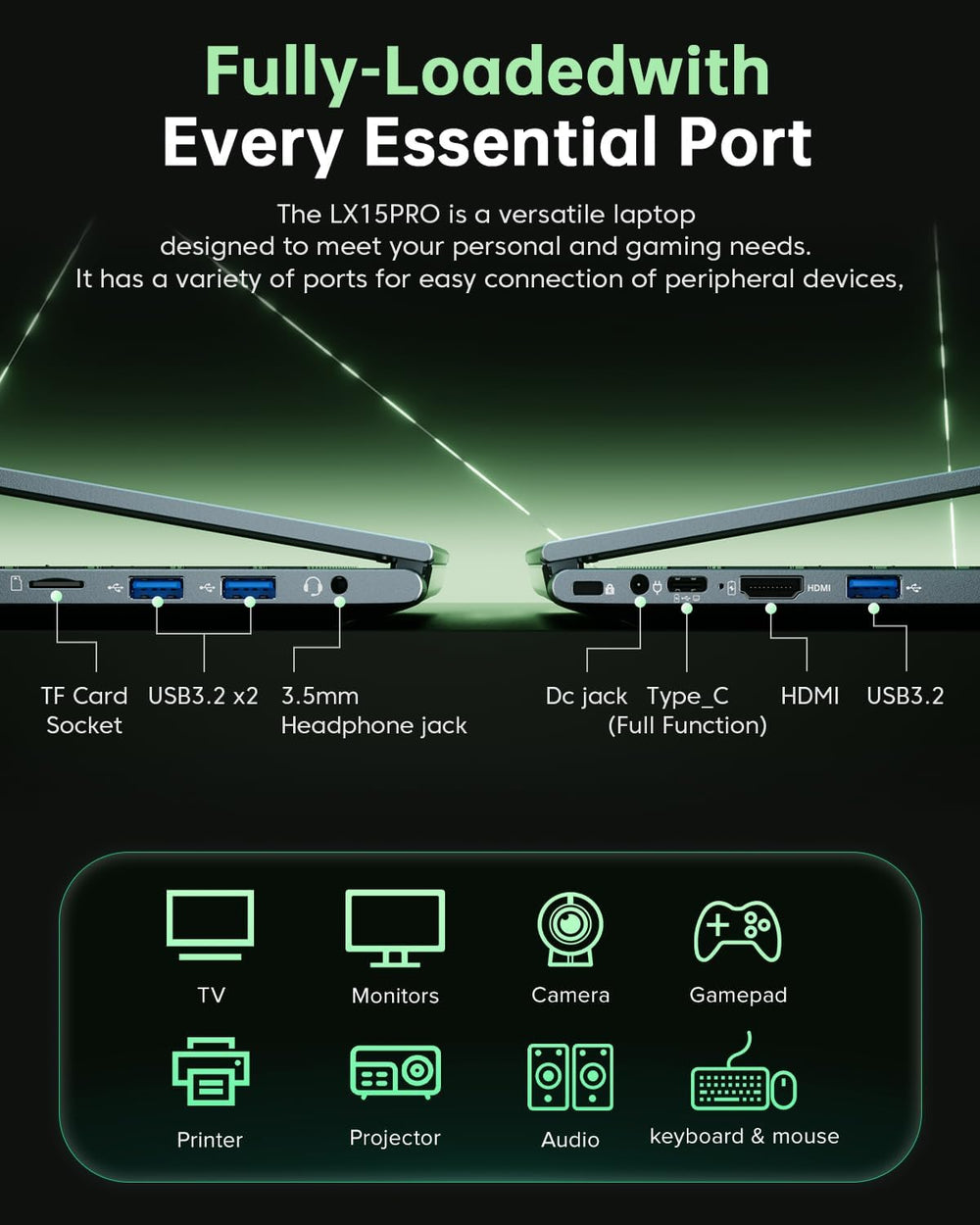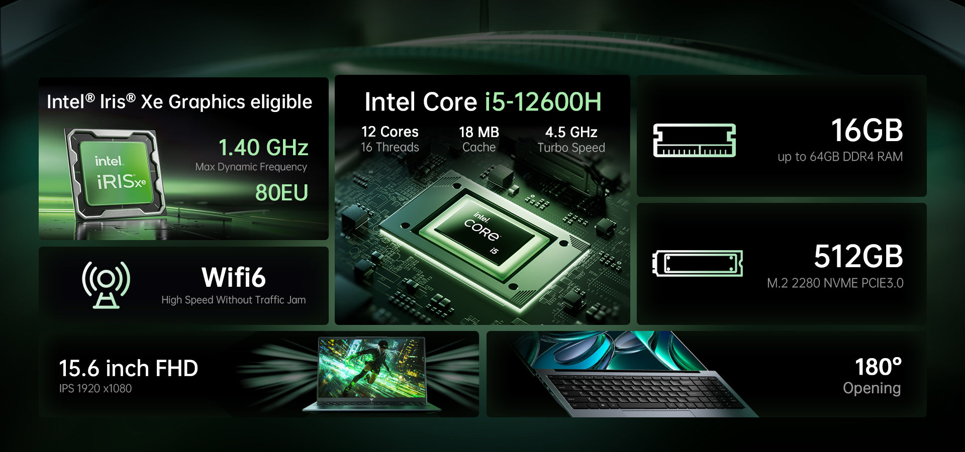 The new ACEMAGIC LX15Pro laptop is powered by an Intel Core i5-12600H processor with clock speeds ranging from 2.7 GHz to 4.5 GHz. It comes with 16 GB of DDR4 RAM and a 512 GB SSD, ensuring smooth everyday performance. The RAM is expandable up to 64 GB and the SSD up to 4 TB. A 15.6-inch IPS display with a 16:9 aspect ratio enhances productivity and browsing.